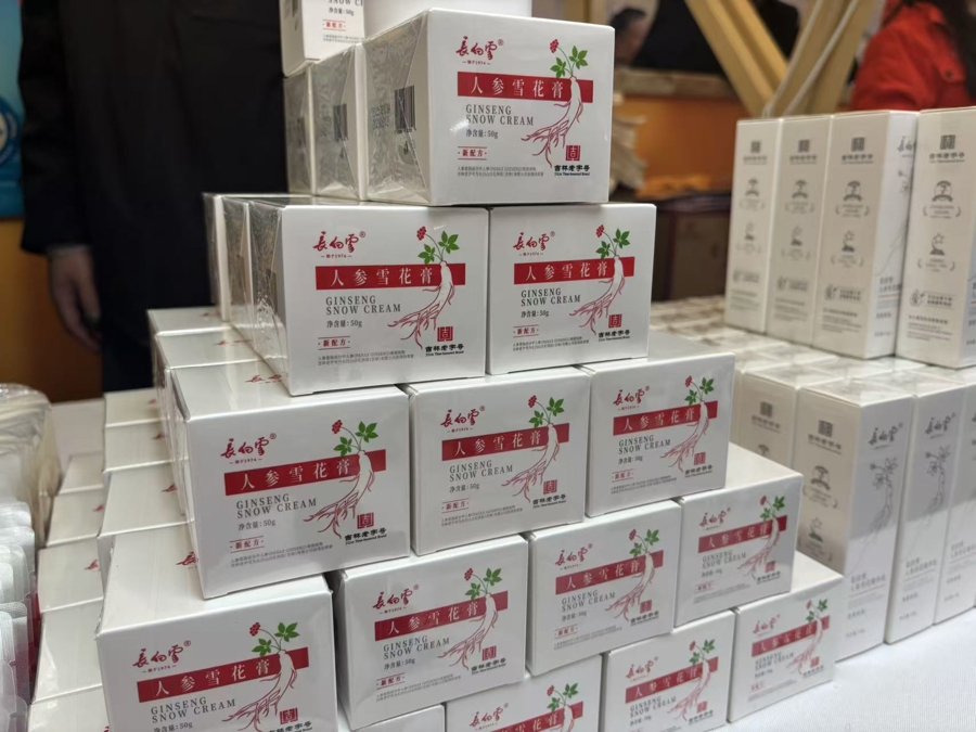 另一款长白山人参雪花膏则添加了人参精油,打开就能闻到人参的植物香味。“700克鲜人参才能提取1克人参精油。”该工作人员表示,这款罐装雪花膏是2025年的新配方,不仅去除了老款中的玫瑰香精,还加入了玻色因等舒缓保湿的新成分,满足不同肤质的需求。
