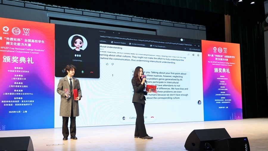 随着全球化进程不断深入,跨文化沟通能力成为个体参与国际交流时的关键素养。12月11日至14日,第八届“外教社杯”全国高校学生跨文化能力大赛在上海外国语大学举办。大赛由中国教育国际交流协会指导,上海外国语大学主办,上海外语教育出版社承办,吸引来自全国31个省、自治区、直辖市1050余所高校的3000多名学生参加比赛,76支中国学生组队伍和25支国际学生组队伍晋级全国决赛,参赛规模和层次均为历届最高。